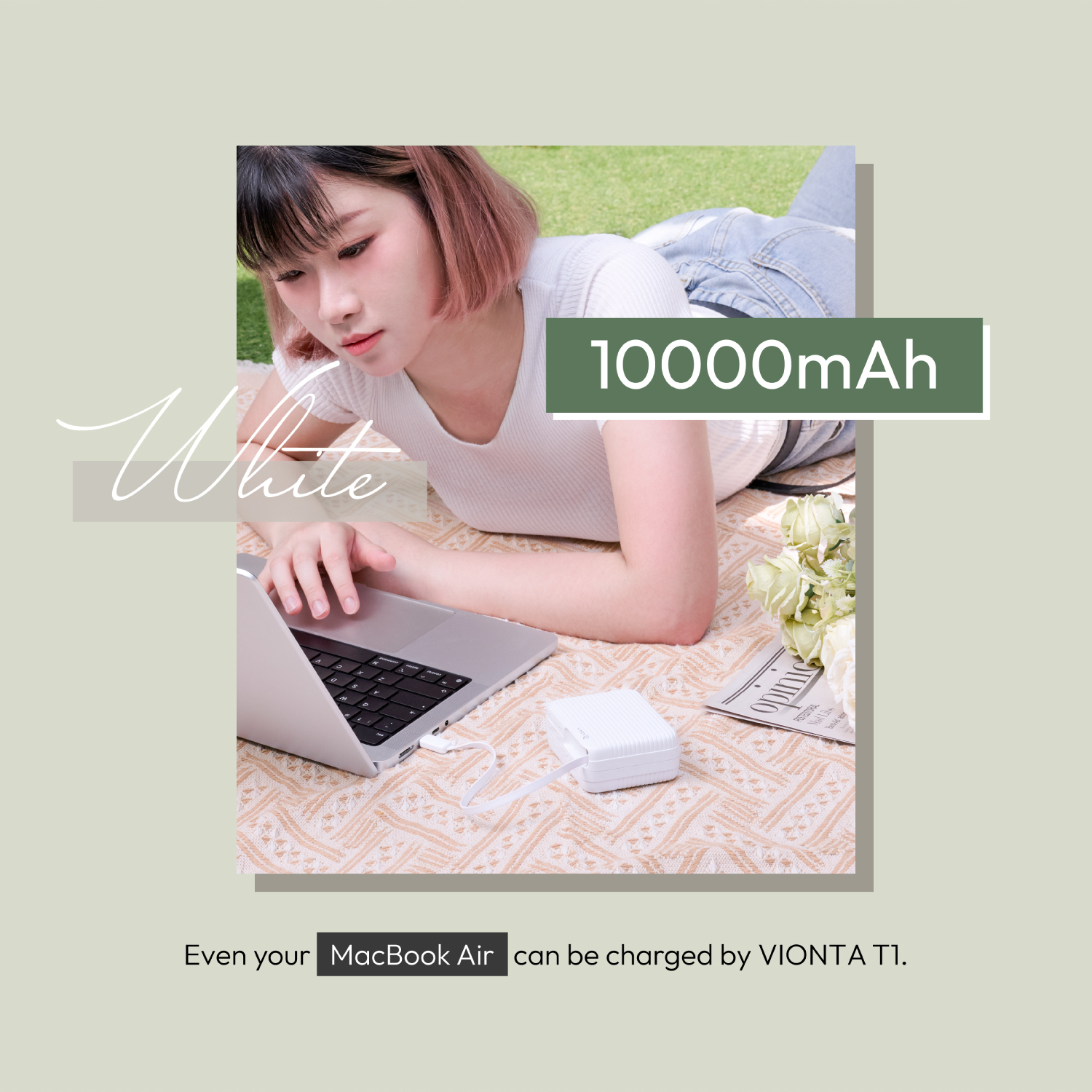 VIONTA T1 10,000mAh Travel Power Bank with Built-In Cable