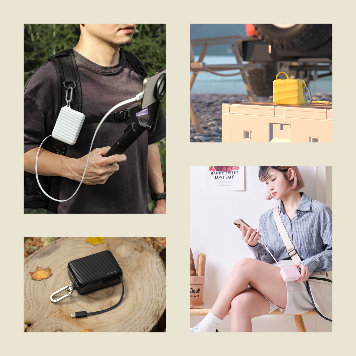 • Built-in 10000mAh power bank with a suitcase-inspired design, compact yet powerful