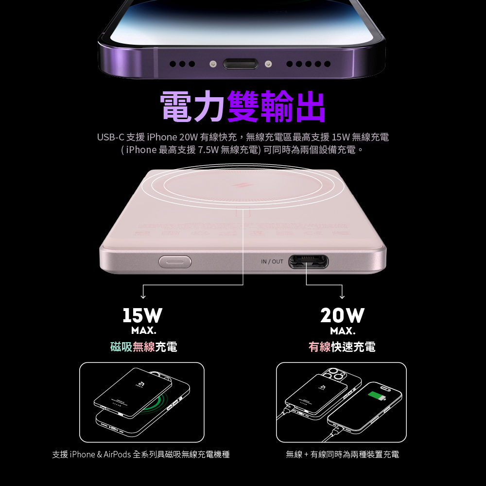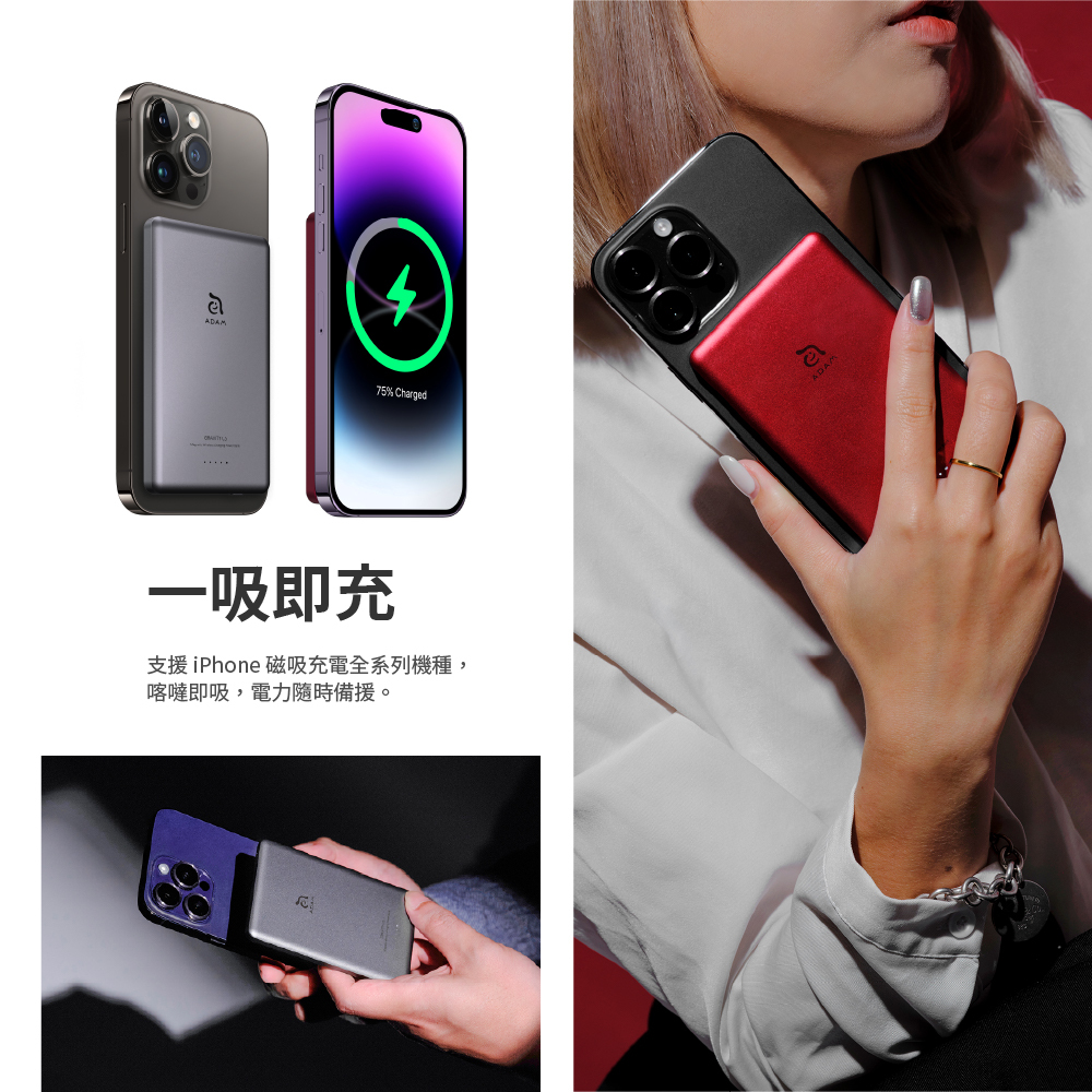 支援MagSafe充電殼,精準對位,一吸即充,不遮擋手機鏡頭。穩固不滑落,可邊充電邊使用,達到真無線。
