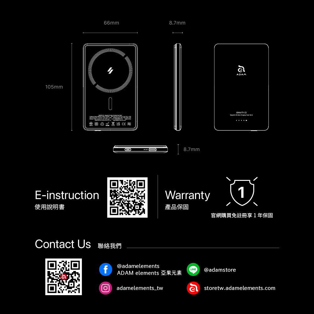 內建5000mAh鋰電池,搭配僅有8.7 mm的極輕薄體積,攜帶無負擔。