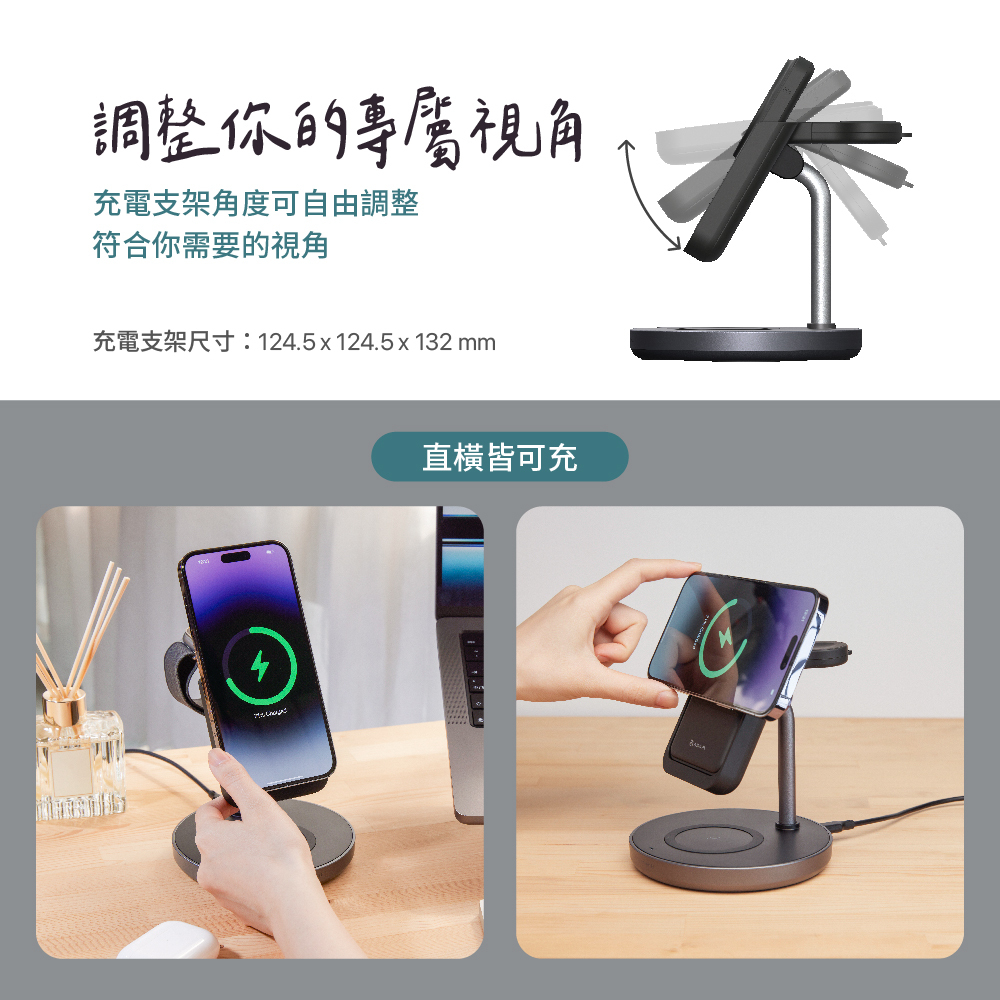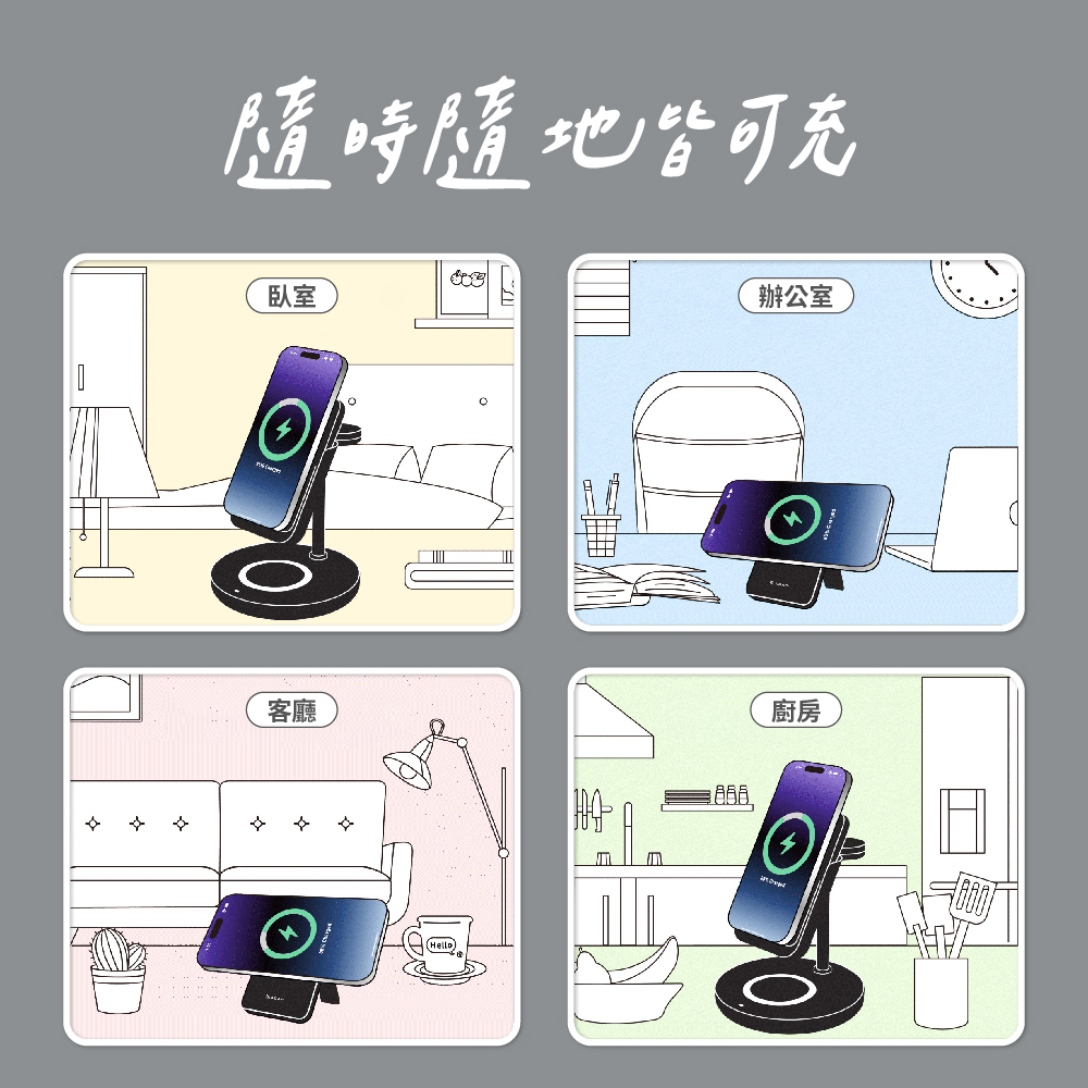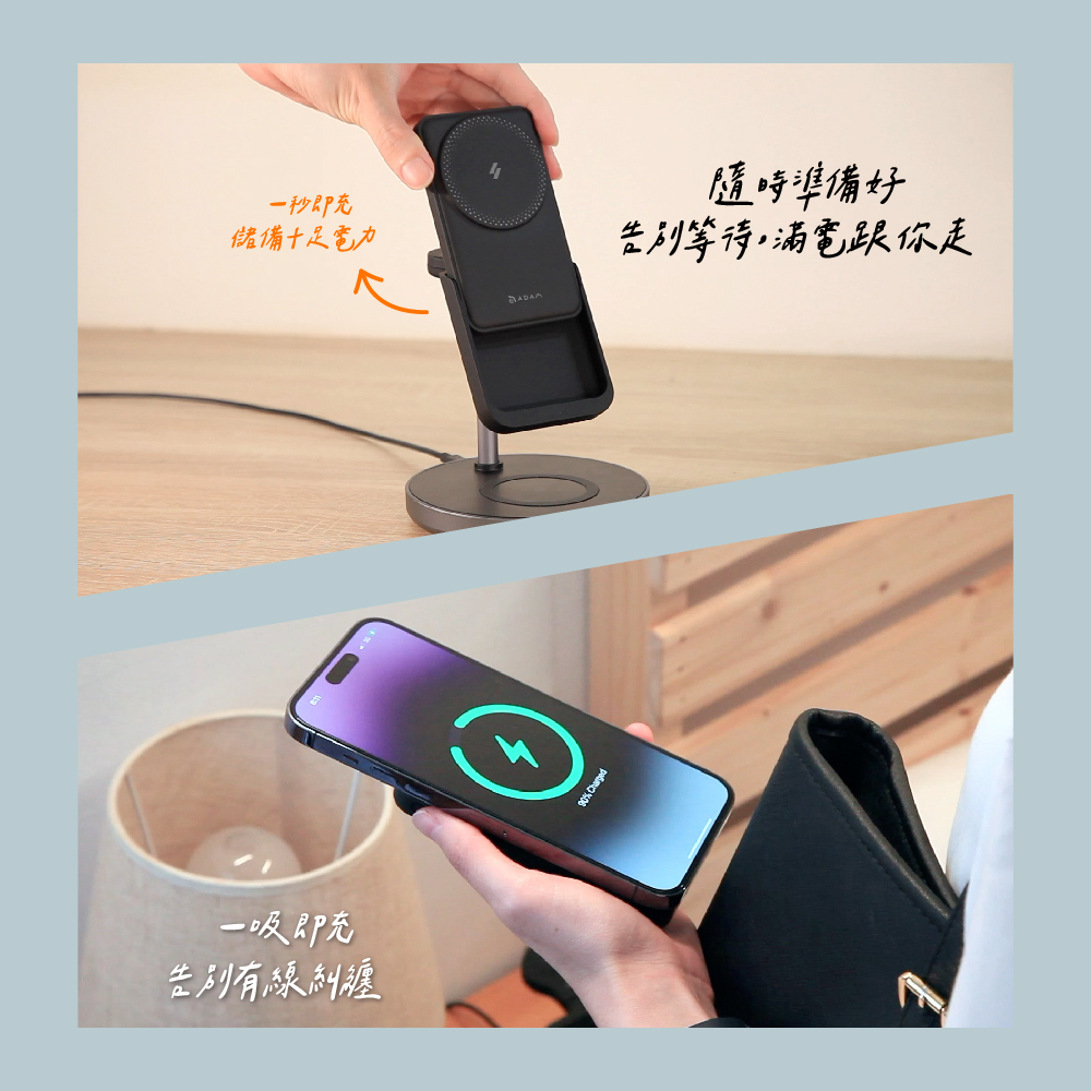 專屬充電區可幫行動電源充電,亦可當成磁吸無線充電盤,出門前再也不怕行動電源沒有電。