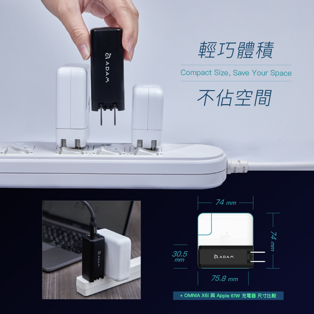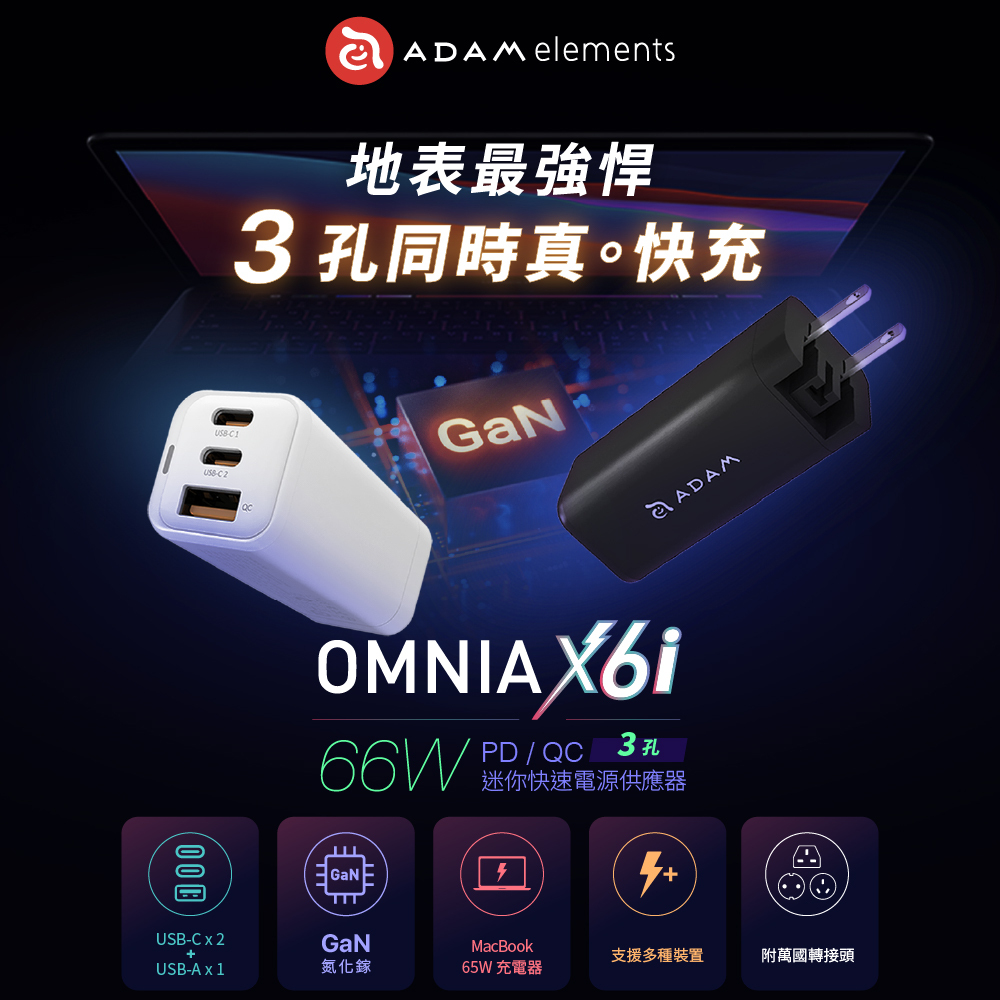 OMNIA X6i USB-C PD / QC 66W 三孔迷你快速電源供應器【2入組】